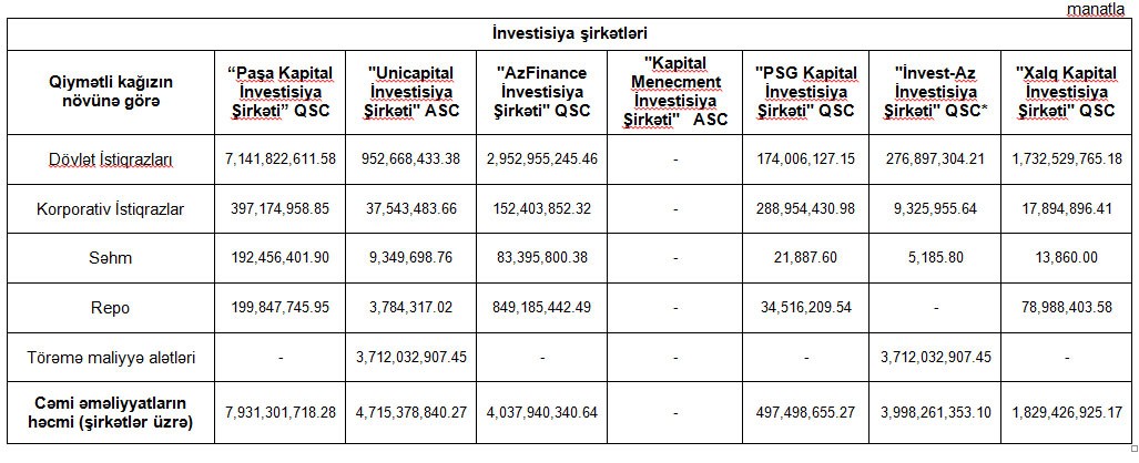 İnvestisiya şirkətlərinin dövriyyələri açıqlandı