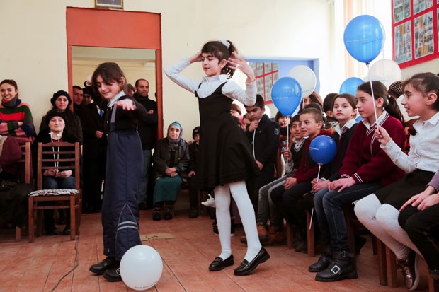 Bayram şənliyində uşaqlar Yeni il təntənələrinin əsas personajları sayılan Şaxta baba və Qar qızla birlikdəmahnı oxuyub, şeir söyləyib doyunca əyləniblər.