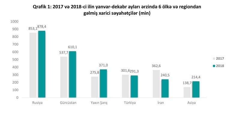Rusiya, Gürcüstan və Yaxın Şərq ümumi səyahətçi axınının üçdə ikisini təşkil edib. Ölkə turizminin səyahətçi sayına görə ən böyük paylarına malik olan Gürcüstan, Yaxın Şərq və Asiya bazar paylarını müvafiq olaraq, 1%, 2% və 2% olmaqla bir qədər artırıblar. Rusiya və Türkiyə hər biri bazar payını təxminən 1%, İran isə ən böyük azalma ilə 5% itirib.