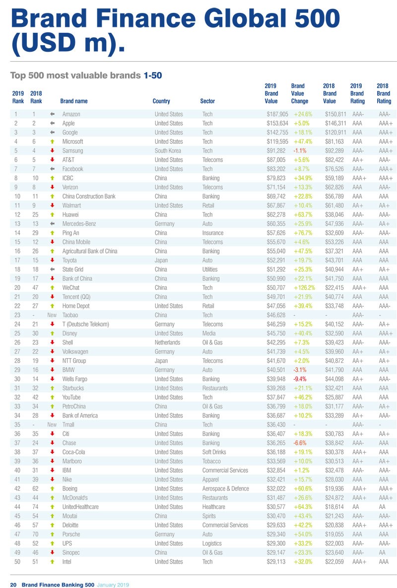 Beynəlxalq marka qiymətləndirmə təşkilatı "Brand Finance" tərəfindən hazırlanan "Dünyanın Ən Dəyərli 500 markası - Qlobal 500-2019" araşdırması başa çatıb.