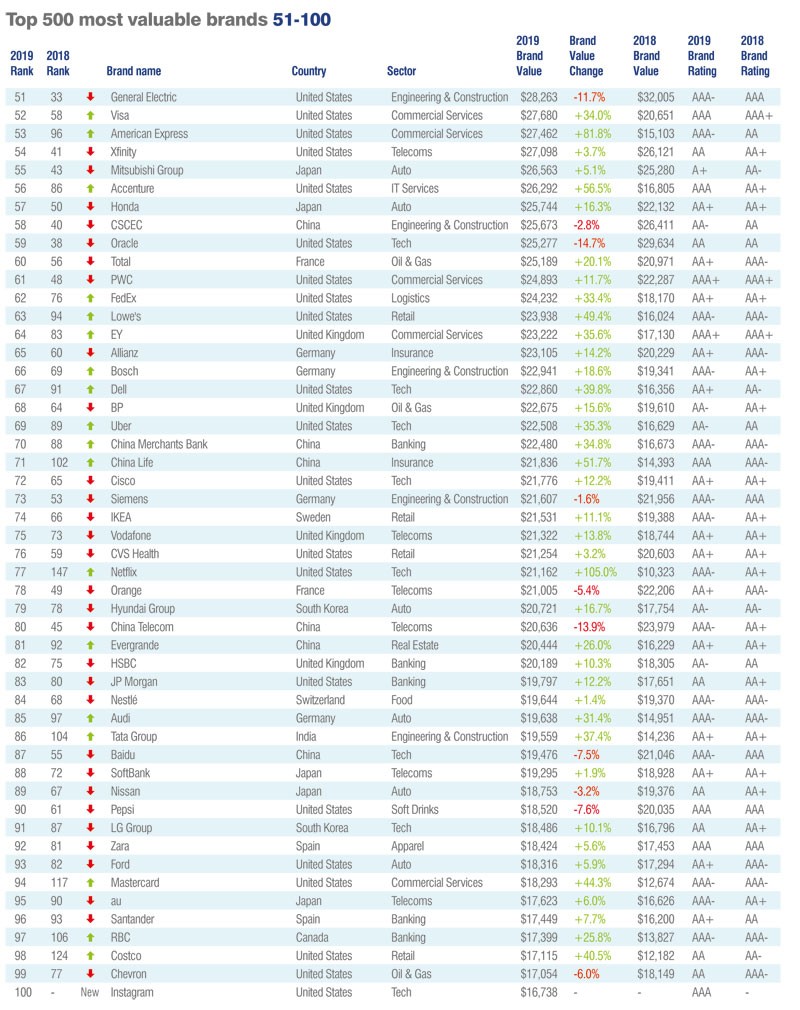 Bu il dəyərini ən yüksək nisbətdə artıran marka 326% artımla Çinli texnologiya şirkəti iQiyi olub. Keçən il 1 milyard dollar olan marka dəyərini bu il 4,3 milyard dollara qaldıran şirkət, siyahıya 483-ünçü sıradan daxil olub.