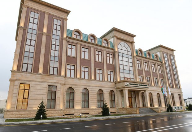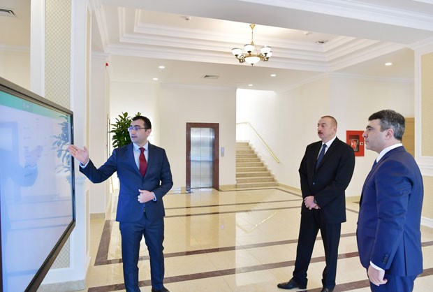 Prezident İlham Əliyev institutun binasının rəmzi açılışı bildirən lenti kəsib.