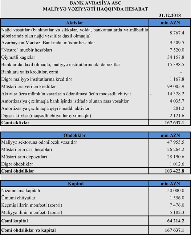 “Bank Avrasiya” 2018-də daha da böyüyüb, ili mənfəətlə bağlayıb