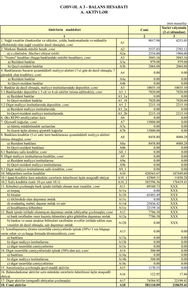 “AtaBank”ın maliyyə vəziyyəti məlum oldu