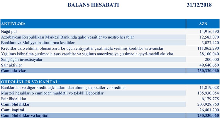 Qeyd edək ki, 2016-cı illə müqayisədə 2017-ci ildə Bankın aktivləri, kredit portfeli və öhdəlikləri azalmışdı.
