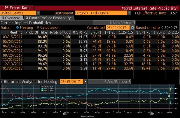 Treyderlər, Fed-in Mart ayında faiz artıracağına 86 faiz ehtimal verirlər.
