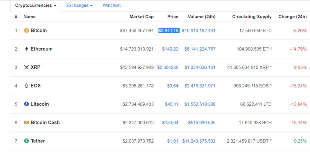 Dünyanın aparıcı kriptovalyutası sayılan Bitcoin-in qiyməti son 24 saat ərzində, təxminən, 8% azalaraq 3 800 ABŞ dollarına yaxınlaşıb.
