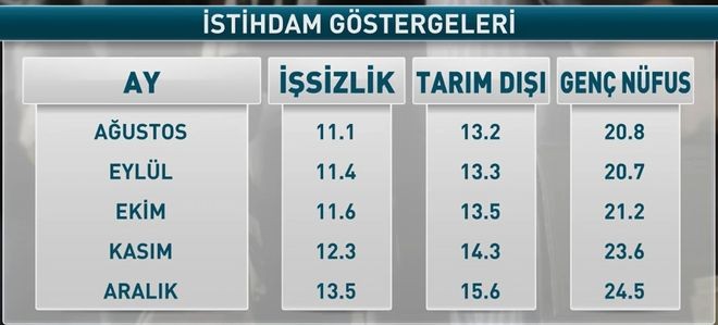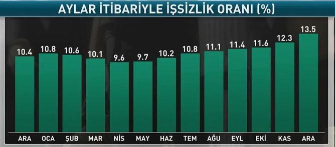 Türkiyə Statistika Komitəsinin (TÜİK) məlumatlarına görə, 2017-ci illə müqayisədə 2018-ci ildə Türkiyə daxilində 15 və daha yuxarı yaşda olan işsizlərin sayı 1 milyon 11 min nəfər artaraq 2018-ci ilin Dekabr ayında 4 milyon 302 min nəfərə çatıb.