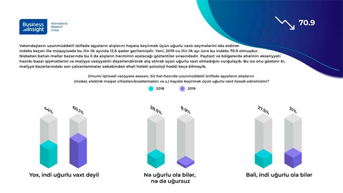 Gələcəkdə uzunmüddətli alışlara əhalinin əksəriyyəti ehtiyatla yanaşacağını nümayiş etdirib.