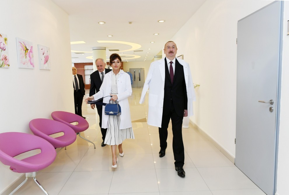 Prezident İlham Əliyev: Bu mərkəz çoxdan fəaliyyət göstərirdi. Təqribən 10 il bundan əvvəl əsaslı şəkildə yenidən quruldu, təmir olundu və indi ölkəmizin aparıcı tibb mərkəzlərindən biridir. Son illərdə ölkəmizin hər bir yerində doğum evləri, doğum şöbələri, xəstəxanalar tikilir. Yəni, indi tibbi xidmət almaq üçün bütün şərait var.