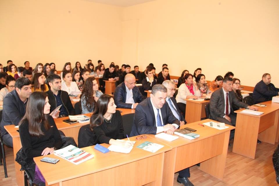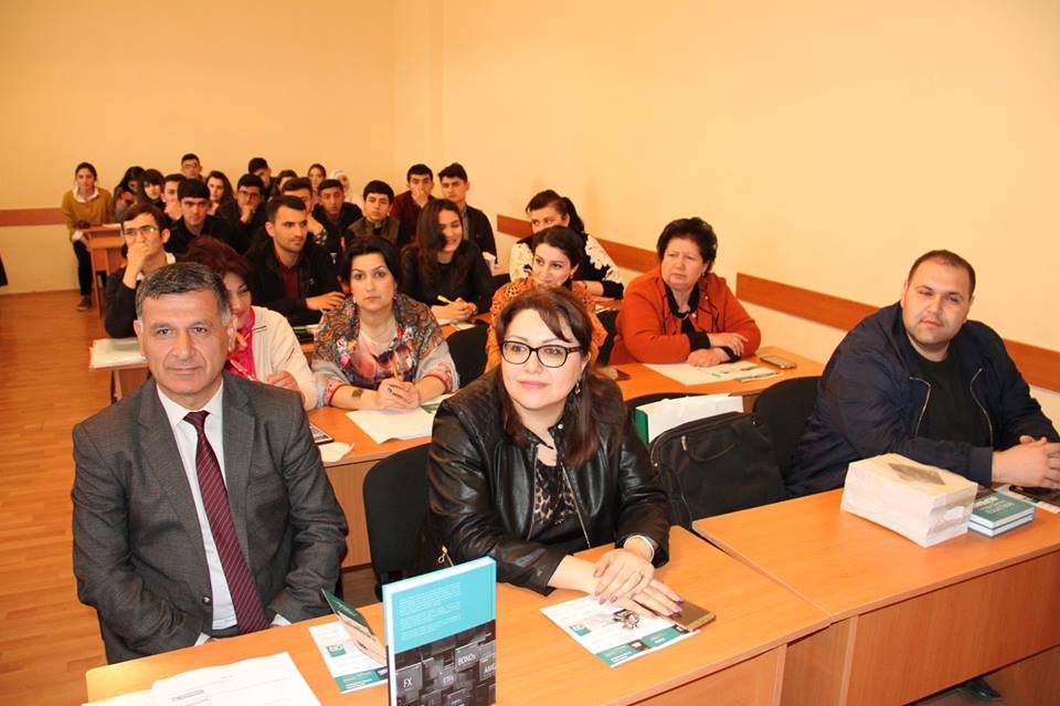 Təlimi giriş sözü ilə açan Maliyyə və iqtisadi nəzəriyyə kafedrasının müdiri professor Məhərrəm Hüseynov qonaqları auditoriya iştirakçılarına təqdim edərək bugünkü görüşün mahiyyətindən bəhs edib. Ümumilikdə təlim çox interaktik şəkildə keçib və tələbələri maraqlandıran suallar cavablandırılıb.