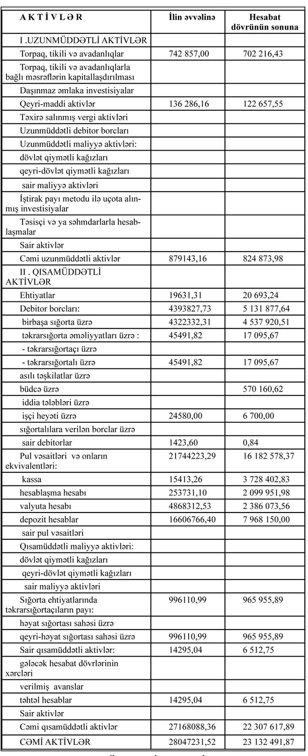 “A-Qroup Sığorta Şirkəti” ASC-nin 2016-cı il dekabrın 31-nə balans hesabatı