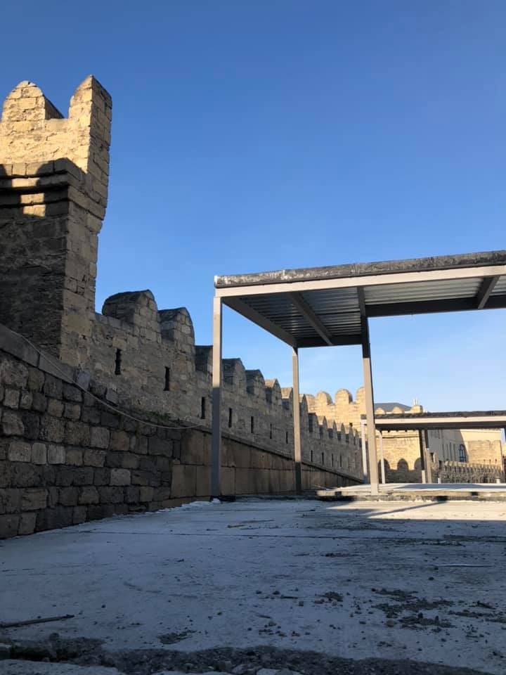 Daş-kərpicsiz, divardan aralıqda 10 ilə yaxın mövcud olan və nədənsə orada səhər yeməkləri yeyən zaman Qala divarları heç yadlarına düşməyən bəzi şəxslərin irad tutduğu kimi yox, yüngül metal konstruksiyalardan ibarət kafe-terraslar yığılır və heç bir abidəyə zərər yetirmir.
