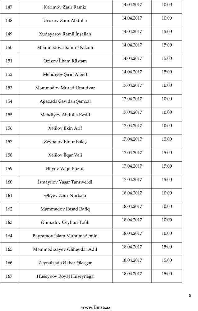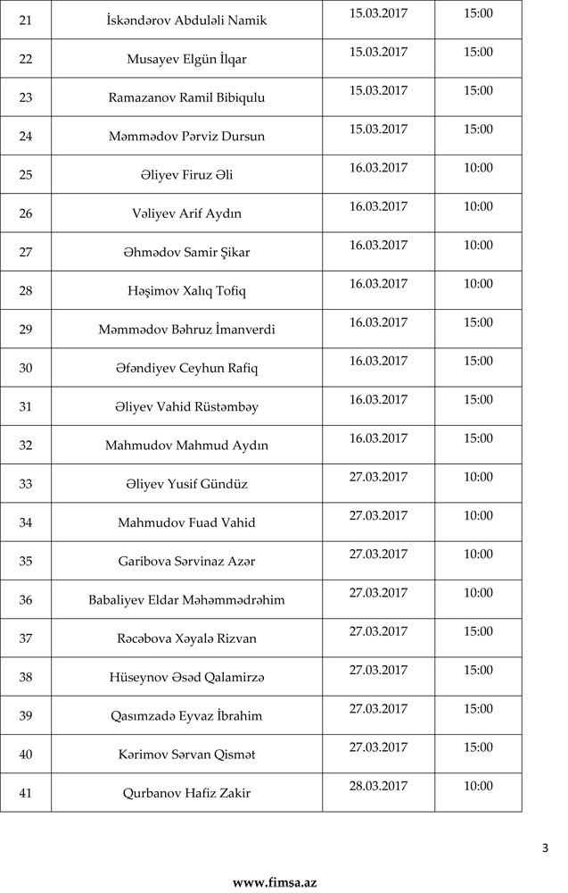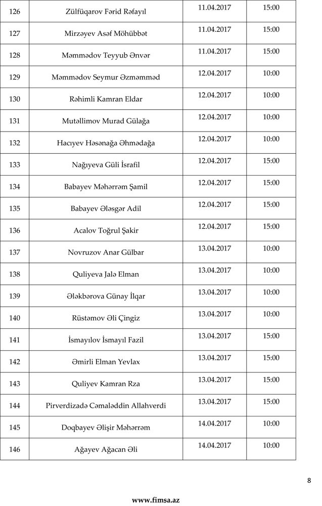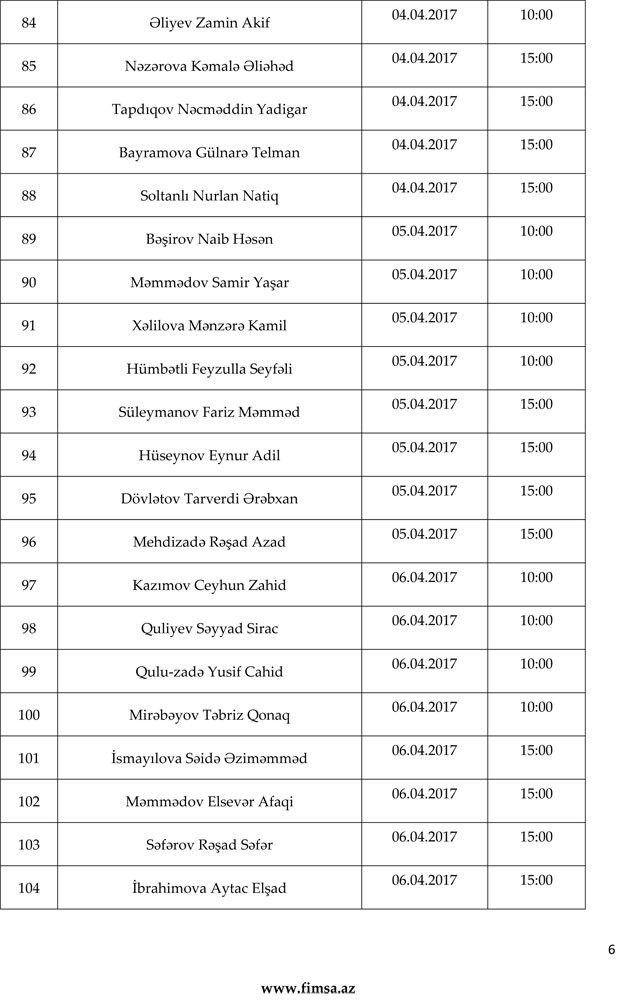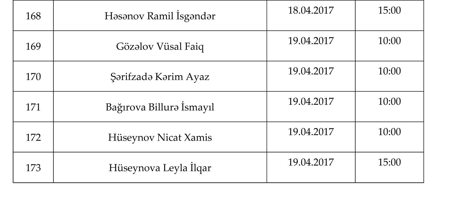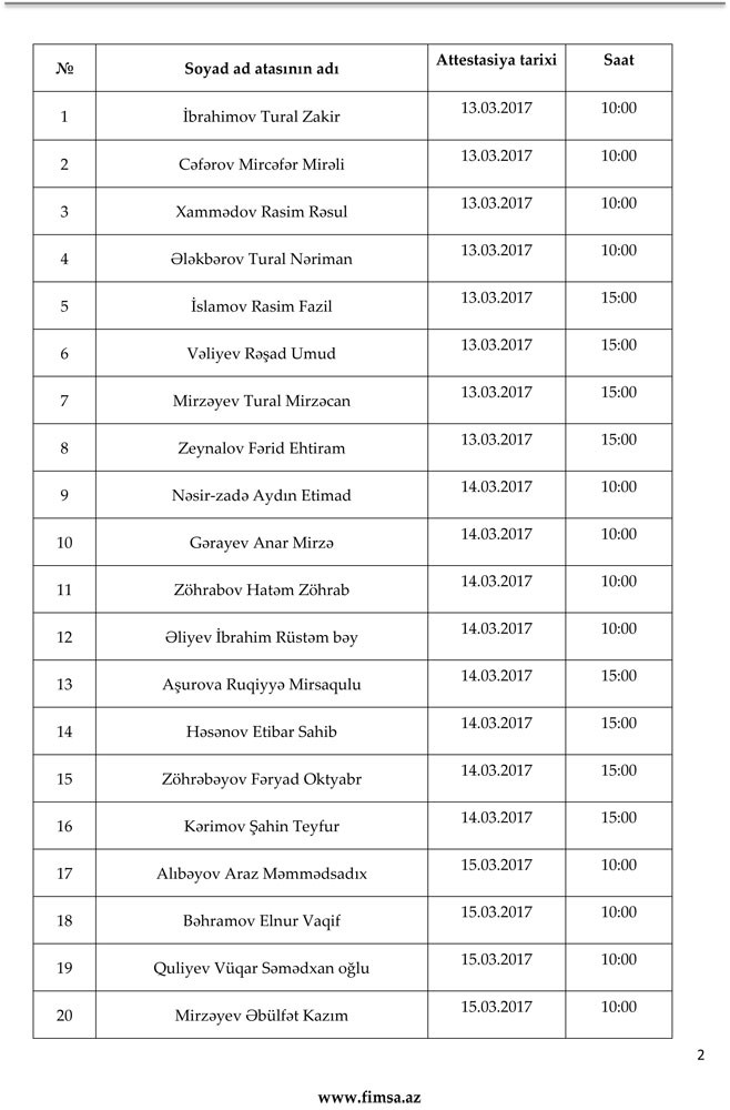 Namizədlər attestasiyanın tarixi və vaxtı barədə məlumatı aşağıdakı siyahıdan əldə edə bilərlər.