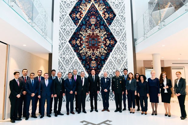 Dövlətimizin başçısı səfirliyin əməkdaşları ilə xatirə şəkli çəkdirib.