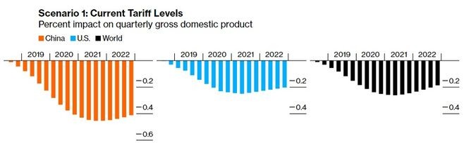 Əgər; əlavə gömrük vergiləri bütün ABŞ - Çin məhsullarını əhatə edərsə, bazarlar cavab olaraq ani və kəskin düşərsə, qlobal iqtisadiyyat 2021-ci ildə 600 milyard dollar azala bilər.