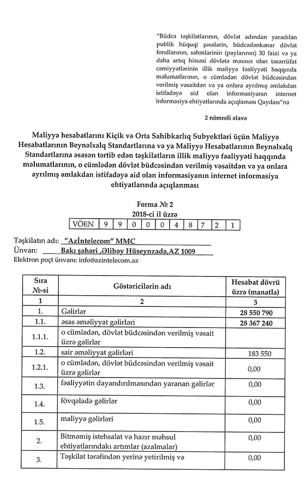 Nəqliyyat, Rabitə və Yüksək Texnologiyalar Nazirliyinin nəzdində fəaliyyət göstərən “AzInTelecom” MMC 2018-ci ili 8 milyon 238 min manat xalis mənfəət ilə başa vurub.