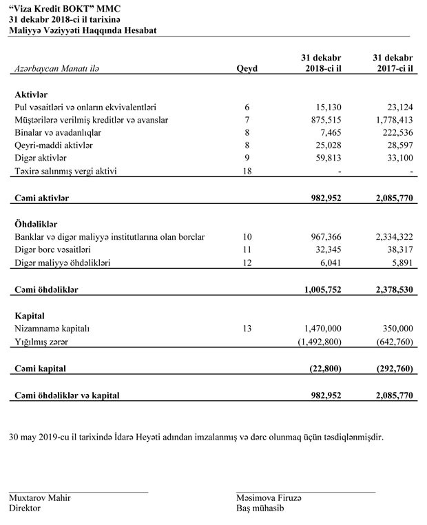 “Viza Kredit” kapitalını itirib