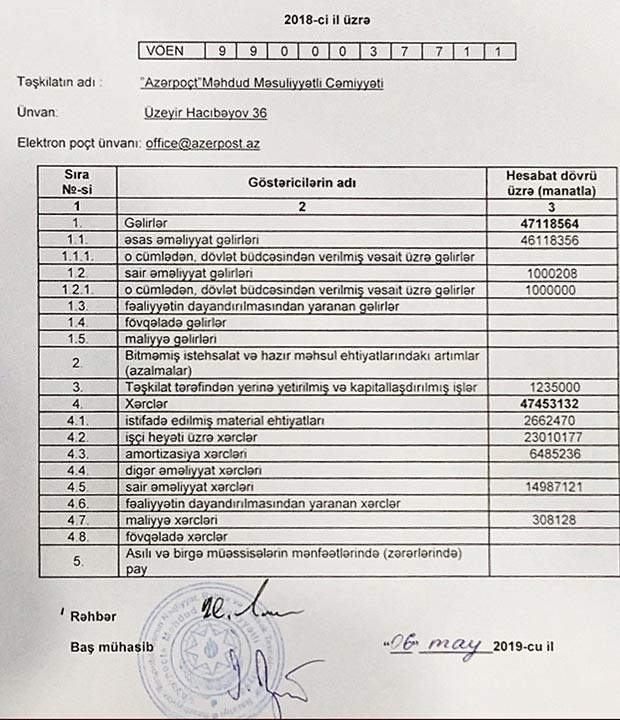 “Azərpoçt” 2016-cı ili 4 milyon 595 min manat, 2017-ci ili isə 2 milyon 951 min manat xalis mənfəət ilə bağlamışdı.