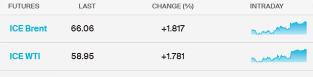 "Marja" xəbər verir ki Brent nefti 1,8%-də bahalaşıb və barelinin qiyməti 66 dolları keçərək 66,06 dollar olub (Bakı vaxtı ilə saat 09:25-ə olan məlumat).