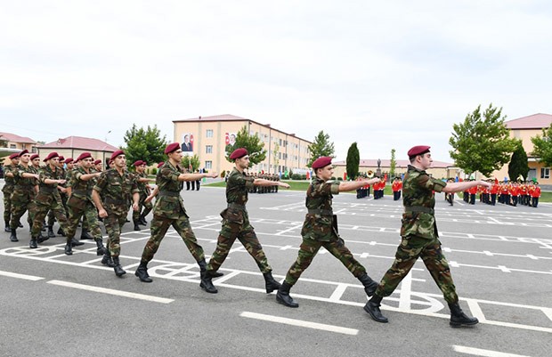 Daha sonra şəxsi heyət təntənəli marşla tribunanın önündən keçib.