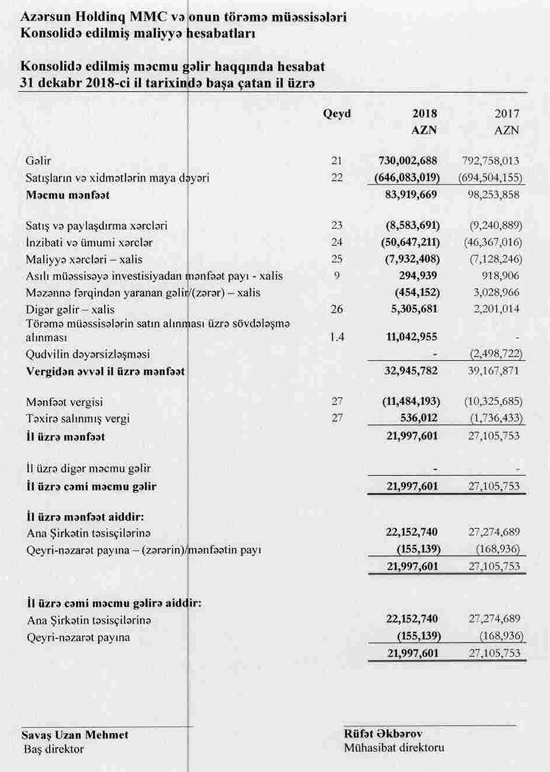 Ötən il inzibati və ümumi xərclər artıb. Həm satışdan gəlirin azalması, həm də bir sıra xərclərin artması ilə əlaqədar olaraq holdinqin xalis mənfəəti azalıb.