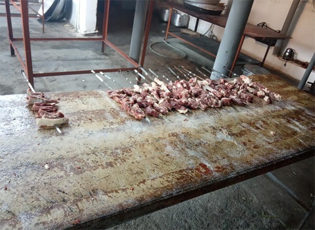 Bundan başqa, manqal yeməklərinin hazırlanmasında istifadə olunan ət məhsullarının üzəri açıq şəkildə masada saxlanıldığı, istifadə edilən qazançaların yararsız olduğu, ətin doğranması üçün ayrılmış kötüklərin baytarlıq-sanitariya və sanitariya-gigiyena normalarına cavab vermədiyi müəyyən olunub.