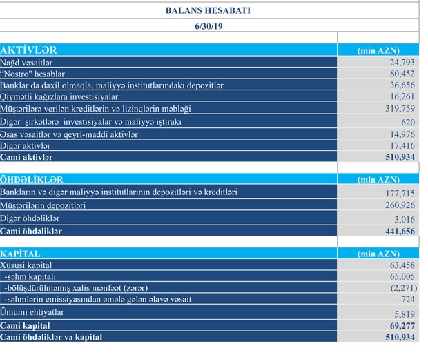 Daha bir bank yarımillik maliyyə vəziyyətini açıqladı