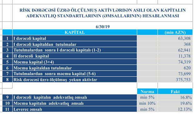 Bankın qeyri-faiz gəlirləri isə 1 milyon 716 min manatdan 1 milyon 577 min manata düşüb (139 min manat və ya 8,1% azalıb).