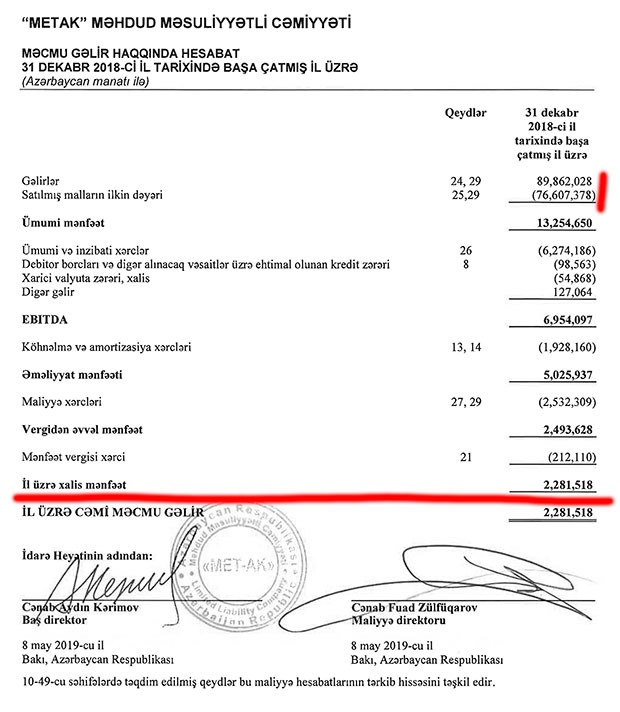“METAK” şirkəti 2018-ci ilin birinci yarısını 3 milyon 132 min manat xalis mənfəət ilə başa vurub. Ötən ilin ikinci yarısında şirkətin mənfəəti 851 min manat azalıb.