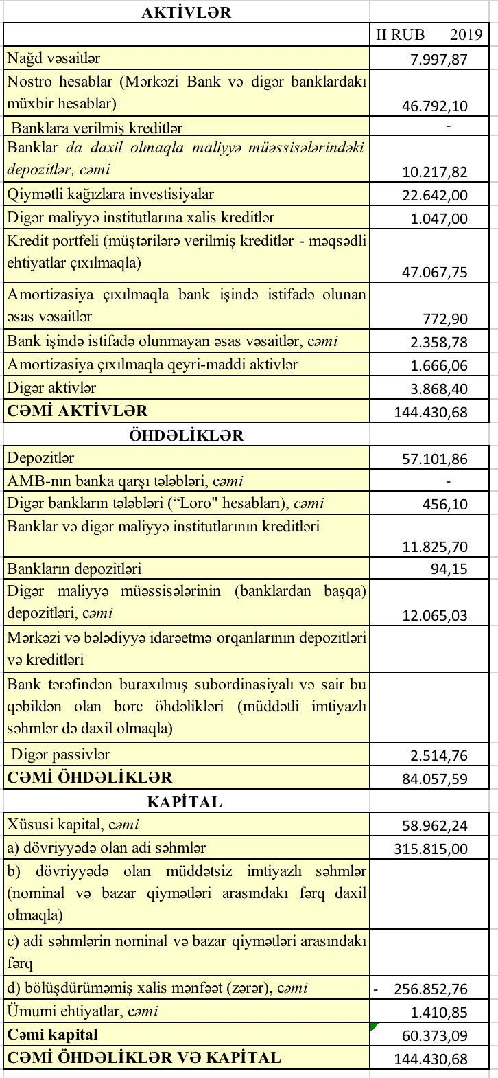 Müqayisə üçün qeyd edək ki, 2018-ci ilin 1-ci yarısında da “VTB Bank Azərbaycan”ın gəlirləri xərclərini ödəməmişdi. Xərclər gəlirləri kəskin üstələdiyindən bankın 16 milyon 82 min manat əməliyyat zərəri yaranmışdı. Üstəlik Bank, ehtiyatlara 234 milyon 289 min manat ayırmışdı. Nəticədə Bankın yarımillik zərəri 250 milyon 371 min manata çatmışdı.