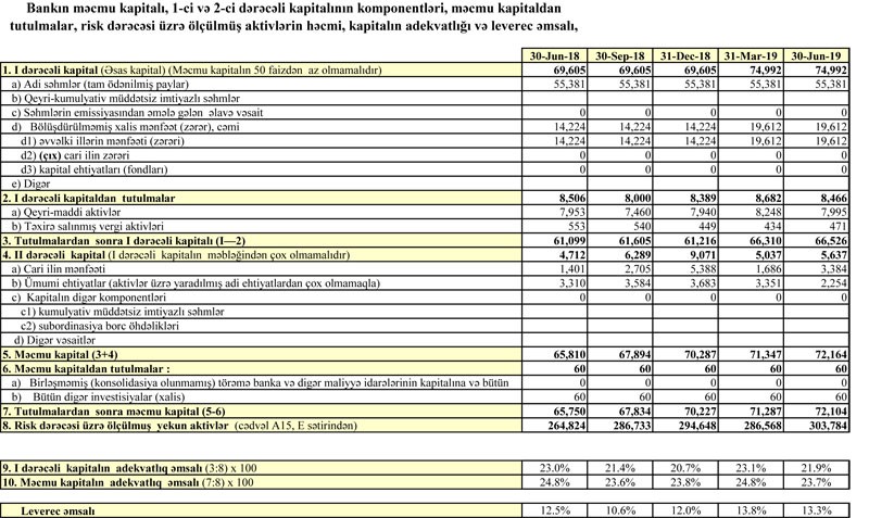 30 İyun 2019-cu il tarixində “Yapı Kredi Bank Azərbaycan” 72 milyon 104 min manat məcmu kapitala malik olub. Ötən ilin İyun ayının sonu ilə müqayisədə Bankın məcmu kapitalı 10% artıb. Artımın əsas səbəbləri Bankın nizamnamə kapitalının artırılması və mənfəətinin artmasıdır.