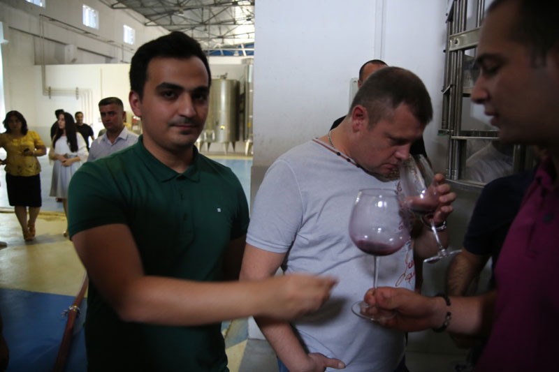 Direktorun çıxışından sonra qonaqlarla birgə istehsalat bölməsinə baxış keçirilib. Burada şərabların hazırlandığı ən son texnologiyaya uyğun aparatlarla tanış olub və məhsulların dadına baxıblar. Sonda isə iştirakçılara “Şəki Şərab Zavodu”nun istehsalı olan şərablar hədiyyə olunub.