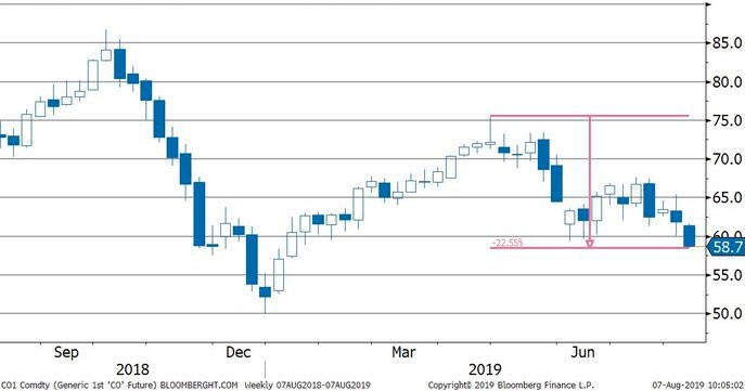 ABŞ ilə Çin arasındakı ticarət müharibəsi nəticəsində neftə tələbin azalacağı gözlənilir. Tələbə dair narahatlıqların təsirilə Aprel ayının ortasında bu yana Brent nefti 20%-dən çox ucuzlaşıb.