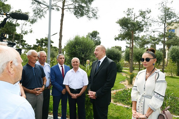 Sonra dövlətimizin başçısı və birinci xanım “Mirvari” Park Kompleksində rayon ictimaiyyətinin nümayəndələri ilə görüşdülər.