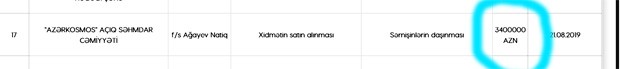 "Azərkosmos" ASC-dən "Marja"ya bildirildi ki, tender.gov.az saytında müqavilənin məbləği texniki səbəbdən səhv göstərilib: "Əslində müqavilənin məbləği 34 min manatdır, satınalmalar portalında rəqəm 34 min manat əvəzinə 3,4 milyon manat düşüb. Tezliklə səhv düzəldiləcəkdir".