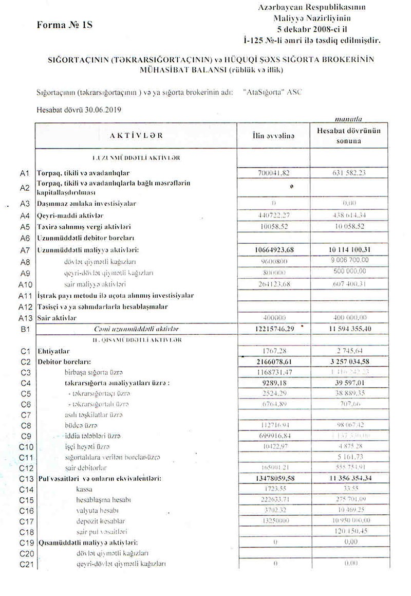 100% "AtaHoldinq" şirkətinə məxsus olan "AtaSığorta" ASC 2019-cu ilin 1-ci yarısını 1 milyon 113 min manat xalis mənfəət ilə başa vurub. Halbuki, şirkət ötən ilin eyni dövrünü 2 milyon 350 min manat xalis zərər ilə bağlamışdı. Bu il "AtaSığorta"nın mənfəətə çıxması ehtiyatdan azadolma və işlərin aparılması xərclərinin azaldılması hesabına baş verib. Şirkətin topladığı sığorta haqları azalıb, sığorta ödənişləri isə artıb.