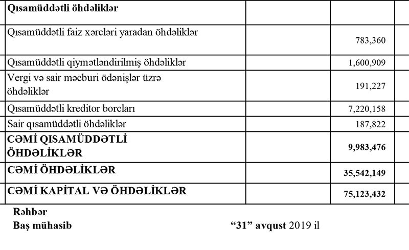 "Bu, bütün törəmə şirkətlərin ("SƏBA", "Qarabağ Taxıl", "Qarabağ Toxum", "Biləsuvar Aqro") konsolidasiya edilmiş hesabatını nəzərdə tutur. Şirkətin biznes modelinin dəyişilməsi ilə əlaqədər 2019-cu ilin ilk altı aylıq nəticələri proqnozlaşdırılmış zərərə uyğundur, hansı ki, ilin nəticələrinə görə mənfəət planlaşdırılır. Bu il üçün şirkətin əsas məqsədi maliyyə ilini böyük mənfəət ilə başa çatdırmaq deyil, gələcək illərin uğurunu təmin etmək üçün, daha çox yeni biznes modelini tamamlamaqdır. Xatırlatmaq istərdik ki, 2018-ci ilin sonuna şirkətin konsolidə olunmuş mənfəəti 5 milyon 866 min 991 manat təşkil edib".