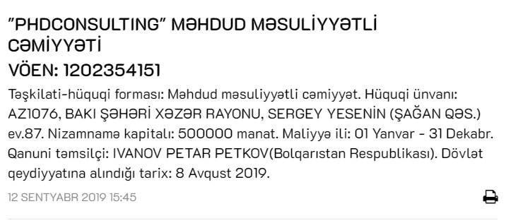 Şirkətin rəsmi nümayəndəsi Bolqarıstan vətəndaşı Petar İvanovdur.