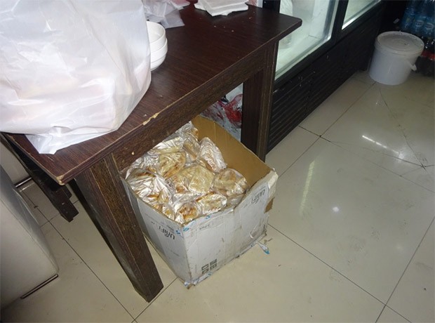 Yoxlama zamanı xammalın saxlanması sahəsi olmadığına görə məhsulların birbaşa mətbəxdə, yemək zalında döşəmənin üzərində və masaların altında yığılaraq saxlanıldığı müəyyən olunub.