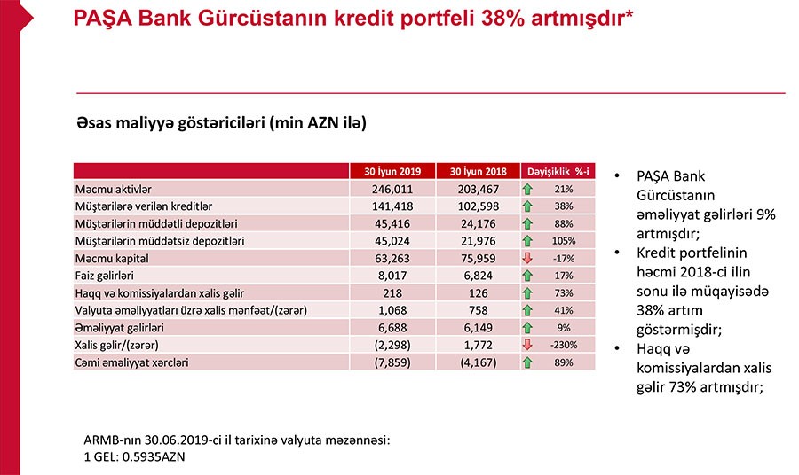 “PAŞA Bank Azərbaycan”, “PAŞA Bank Georgia” və “PAŞA Yatırım Bankası A.Ş.” banklarının daxil olduği “PAŞA Bank” qrupunun 30 iyun 2019-cu il tarixinə maliyyə göstəriciləri açıqlanıb.