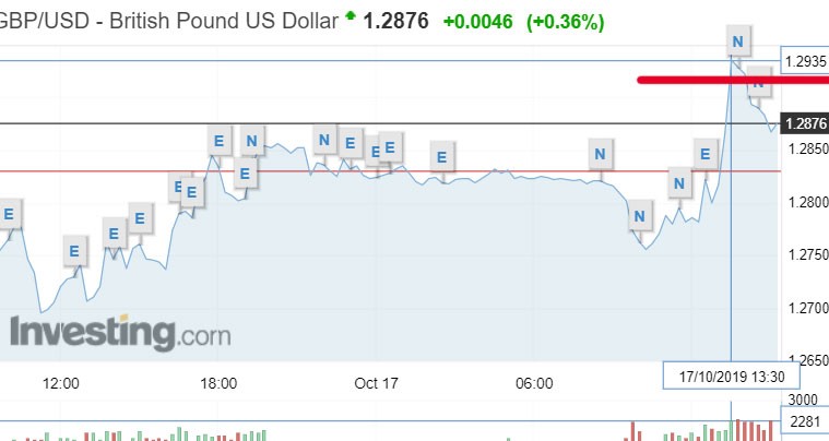 "Marja" xəbər verir ki, Sterlinq/dollar məzənnəsi, Böyük Britaniyanın Baş Naziri Boris Consonun və Aİ Komissiyasının Prezidenti Jean-Claude Junckerin razılığa gəldiyini təsdiqləməsinin ardından 1.29 səviyyəsini aşıb.