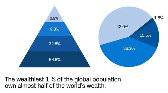 Hesabata görə, insanların 32.6%-inin sərvəti 10 min dollar ilə 100 min dollar arasındadır və ümumi sərvətin 15.5%-ini təşkil edir. İnsanların 9.8%-i 100 min dollar ilə 1 milyon dollar arasında sərvət sahibdir. Bu insanların sərvətləri ümumi sərvətin 38.9%-ni yaradır. Qlobal əhalinin ən varlı 0.9%-lik qismi isə ümumi sərvətin 43.9% ilə az qala yarısına sahibdirlər.