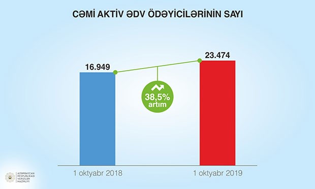 İqtisadiyyatda leqallaşma prosesləri özünü aktiv vergi ödəyicilərinin, o cümlədən ƏDV ödəyicilərinin və aktiv obyektlərin sayında da büruzə verir. Cari ilin oktyabr ayının 1-nə ötən ilin müvafiq dövrü ilə müqayisədə aktiv vergi ödəyicilərinin sayı 13,0 faiz, aktiv ƏDV ödəyicilərinin sayı 38,5 faiz, aktiv obyektlərin sayı isə 12,6 faiz artıb.
