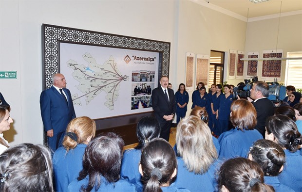 Burada iş şəraiti də, əməkhaqqı da yaxşıdır. Azərbaycanda xalçaçılıq sənətinin bundan sonra da yaşadılması üçün biz çox böyük işlər görürük. Bu məqsədlə “Azərxalça” müəssisəsi yaradılıbdır və mənim göstərişimlə ölkəmizdə 30-dan çox xalça fabriki tikilməlidir. Onlardan 10-u istifadəyə verilib, o cümlədən biri Qəbələ şəhərində. Növbəti illərdə isə 20-dən çox fabrik fəaliyyətə başlayacaq. Bu fabriklərdə minlərlə yeni iş yeri yaradılacaq.
