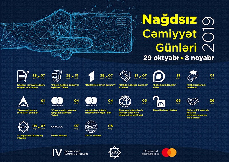 Azərbaycan Banklar Assosiasiyası təşkilatçılığı və Azərbaycan Respublikasının Maliyyə Bazarlarına Nəzarət Palatası, Azərbaycan Respublikasının Mərkəzi Bankı, İqtisadi İslahatların Təhlili, Kommunikasiya Mərkəzinin və digər dövlət qurumlarının dəstəyi ilə 06-07 noyabr 2019-cu il tarixlərində ənənəvi “IV Beynəlxalq Bankçılıq Forumu – Nağdsız iqtisadiyyat: Dayanıqlı bankçılığa doğru” adlı tədbir keçiriləcək.