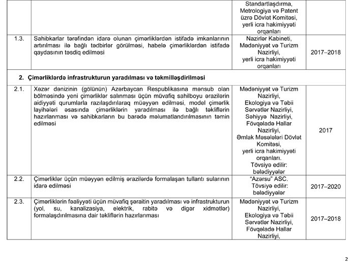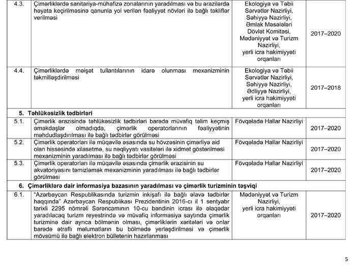 Sərəncam ilə, “Azərbaycan Respublikasında çimərlik turizminin inkişafına dair 2017–2020-ci illər üçün Tədbirlər Planı” təsdiq edilib.