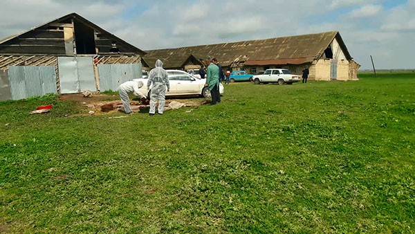 Fermanın həyətində xüsusi qazılmış çalaya atın müxtəlif orqanları (atın baş-ayağı, qaraciyərləri, mədə və bağırsaqları, at skeletləri, atın dəriləri və s.) yığılaraq qanuna müvafiq şəkildə zərərsizləşdirilmişdir.