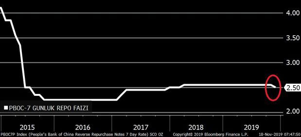 Çin Mərkəzi Bankı (PBOC), qısamüddətli açıq bazar əməliyyatlarında borclanma xərcini (faizi) 2015-ci ilin Oktyabr ayından bu yana ilk dəfə aşağı salıb.