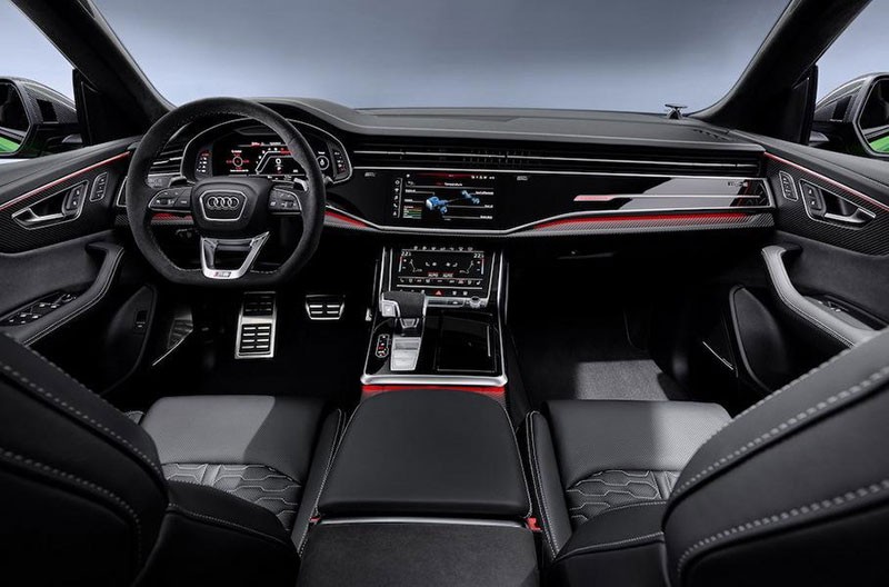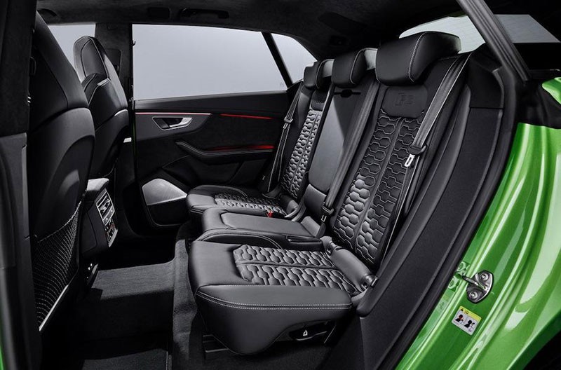 RSQ8 -in zahiri görünüşü digər SUV-lardan fərqlənir: ön hissədə yerləşən radiator barmaqlığı, iri diffuzor, seçilən bamperlər, 23 düymlük təkər diskləri. İnteryerin gözəçarpan sport oturacaqları, virtual cihazların RS-qrafikası, fərqli sükanı bu avtomobilin sport xüsusiyyətlərini vurğulayır. Əyləncə,telefon, naviqasiya və s. kimi opsiyalar 10.1 və 8.6-düymlük monitorlarda idarə olunur.